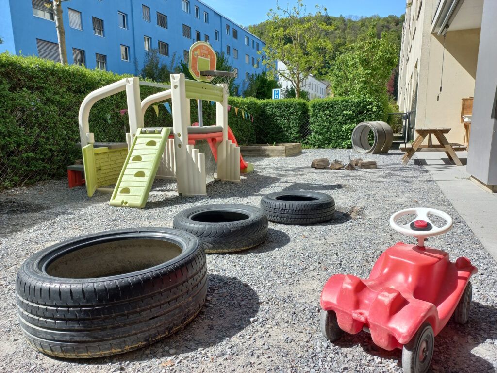 Im Morgenkreis wurde geprüft, ob alle Kinder anwesend sind. Danach durften die Kinder wünschen, wer drinnen bleiben möchte, um sich vorzustellen bei einem Kind, da sie jemanden Neues bekommen haben. Die restlichen 8 von 12 Kindern konnten 1 bis 2 Stunden im Kita-Garten spielen und sich dabei bemerkenswert selbstständig anziehen, ohne grosse Hilfe der Erzieher/-innen. 🌳 Am zweiten Tag spielten alle Kinder in einem sehr grossen Hof mit Spielplatz, wo sie viel Platz zum Toben hatten. ⚽