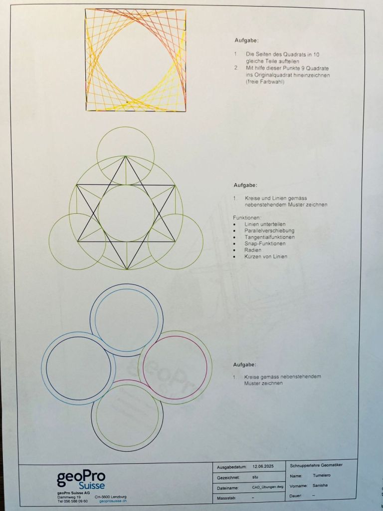 Ein Lehrling zeigte mir die Funktionsweise von AutoCAD Map 3D, und ich durfte anschliessend selbst Formen konstruieren – eine spannende erste Übung! 🖥️✏️